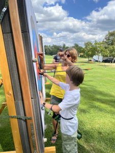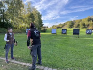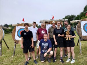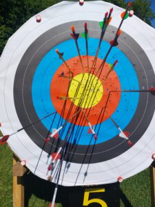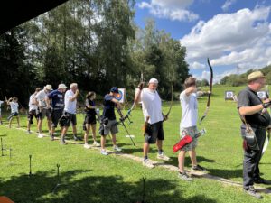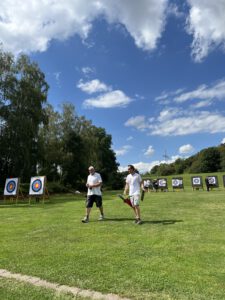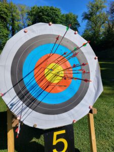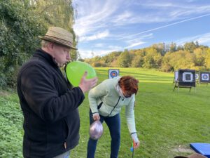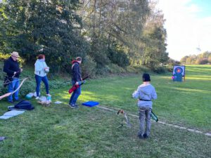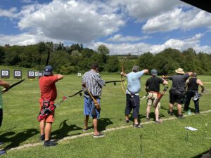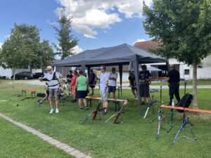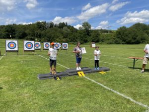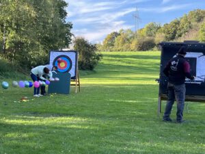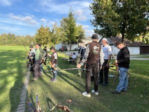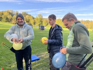 Die Bogensportler hatten sichtlich Spaß an diesem Nachmittag, was an der perfekten Organisation und an den von Sportwart Benedikt abwechslungsreich und spannend gestalteten Aufgaben lag. Neben dem Odysseus-Schuss auf Luftballons, der Jagd auf den laufenden Keiler gehörte zum Beispiel auch das Dosenschießen zu den Herausforderungen.
