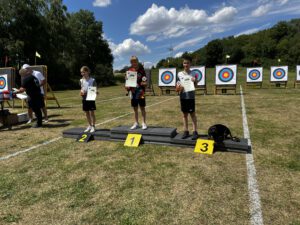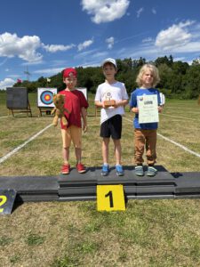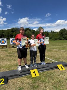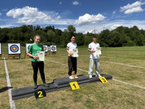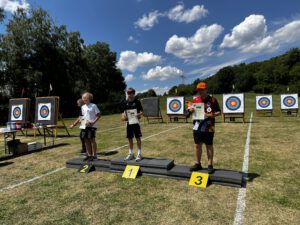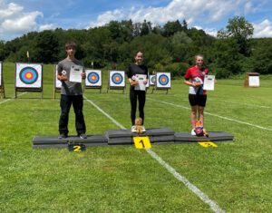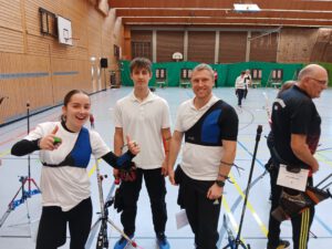 Am Sonntag, dem letzten Tag, starteten die Isartaler Bogenschützen mit Leonora, Lotta und Ferdinand in der Jugendklasse Recurve. Lotta konnte ihre Erwartungen leider nicht ganz erfüllen und erreichte den 12. Platz. Ferdinand zeigte einen sehr guten Wettkampf, blieb jedoch ein paar Ringe unter seinem gewohnt hohen Niveau und belegte den 6. Platz. Leonora schoss einen ihrer besten Wettkämpfe in dieser Saison und sicherte sich den 5. Platz. In der Mannschaftswertung erreichten die drei zusammen den 3. Platz.