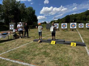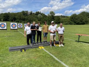 Der sportliche Ehrgeiz war groß, doch Spaß und Gemeinschaft standen klar im Vordergrund. In der Klasse Blankbogen/Instinktiv sicherte sich Peter, unser 1. Vorstand, souverän den Pokal. Bei den Compoundschützen ließ Michael der Konkurrenz keine Chance. Besonders spannend wurde es in der Klasse Recurve: Benedikt und Ferdinandlieferten sich ein packendes Finale auf Augenhöhe, das Benedikt schließlich mit einem Stechpfeil auf den „Geier“ für sich entschied.