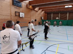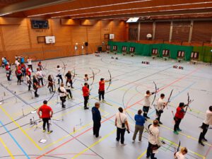 Insgesamt wurden 2 Runden mit je 30 Pfeilen geschossen. Die Altdorfer fanden schnell zur Trainingsform und konnten sich trotz starker Konkurrenz 6 Treppchenplätze sichern. Was für ein tolles Hallenturnier: Simo (Platz 1 Jagdbogen Schüler C), Lotta (Platz 1 Recurce Jugend weiblich), Ferdinand (Platz 1 Recurve Jugend männlich), Benedikt (Platz 2 Recurve Herren), Norbert (Platz 3 Recurve Senioren) und Stefan (Platz 3 Jagdbogen Herren). Schulter an Schulter mit der Konkurrenz lieferten auch Johannes (Platz 4 Langbogen Herren), Luisa (Platz 9 Recurve Jugend weiblich), Herbert (Platz 12 Recurve Senioren), Werner (Platz 12 Blankbogen Master männlich), Gerhard (Platz 18 Recurve Senioren) und Thomas (Platz 22 Recurve Master männlich) eine fokussierte Leistung ab.