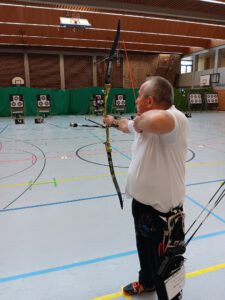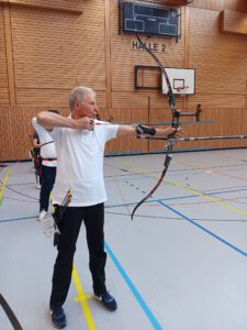 Als einziger Senior aus Niederbayern eröffnete Norbert am Donnerstag für die Isartaler Bogenschützen mit dem Recurvebogen. Leider konnte er nicht seine gewohnte Leistung abrufen und belegte nach 60 Pfeilen den 15. Platz