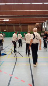 Pünktlich um 9:00 Uhr fiel der Startschuss mit dem Motto: „Alle ins Gold!“ In 20 Passen mit jeweils drei Pfeilen galt es, die Mitte der Zielscheiben zu treffen – maximal 600 Ringe waren möglich. Zur Halbzeit sorgten die ersten Zwischenergebnisse für Spannung und Motivation. Begleiter, Betreuer, Familien und Freunde verfolgten die Wettkämpfe aufmerksam und fieberten mit. Für das leibliche Wohl war durch die Bogenschützen des TV 64 bestens gesorgt – inklusive selbstgebackener Kuchen und erfrischender Getränke.