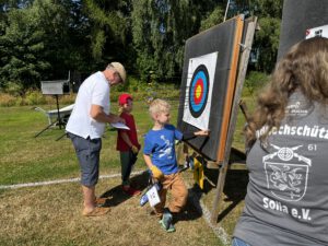 Auf 30 Meter Entfernung flogen die Pfeile präzise und zielsicher in Richtung Scheiben – und natürlich auch auf den legendären „stehenden Bären“, auf den am Ende die heiß begehrten Wanderpokale ausgeschossen wurden.